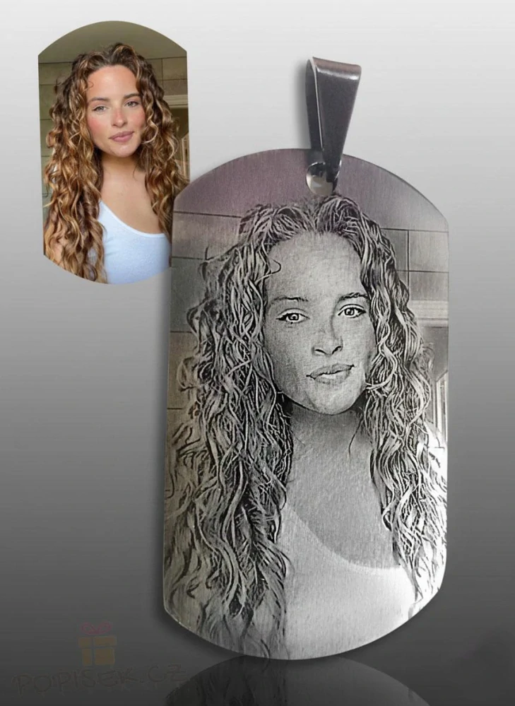 Tento přívěsek s gravírováním je ideální pro ty, kteří chtějí vytvořit unikátní a osobní dárek. Na obou stranách přívěsku můžete mít fotografii, jméno, telefonní číslo nebo jiné věnování. Skvěle poslouží jako psí známka, klíčenka nebo elegantní náhrdelník. Díky volbě oboustranného gravírování a možnosti různých typů řetízků (na klíče, na krk nebo bez řetízku) se tento přívěsek stane univerzálním a krásným doplňkem. Perfektní jako personalizovaný dárek pro vaše blízké nebo pro vaše domácí mazlíčky.