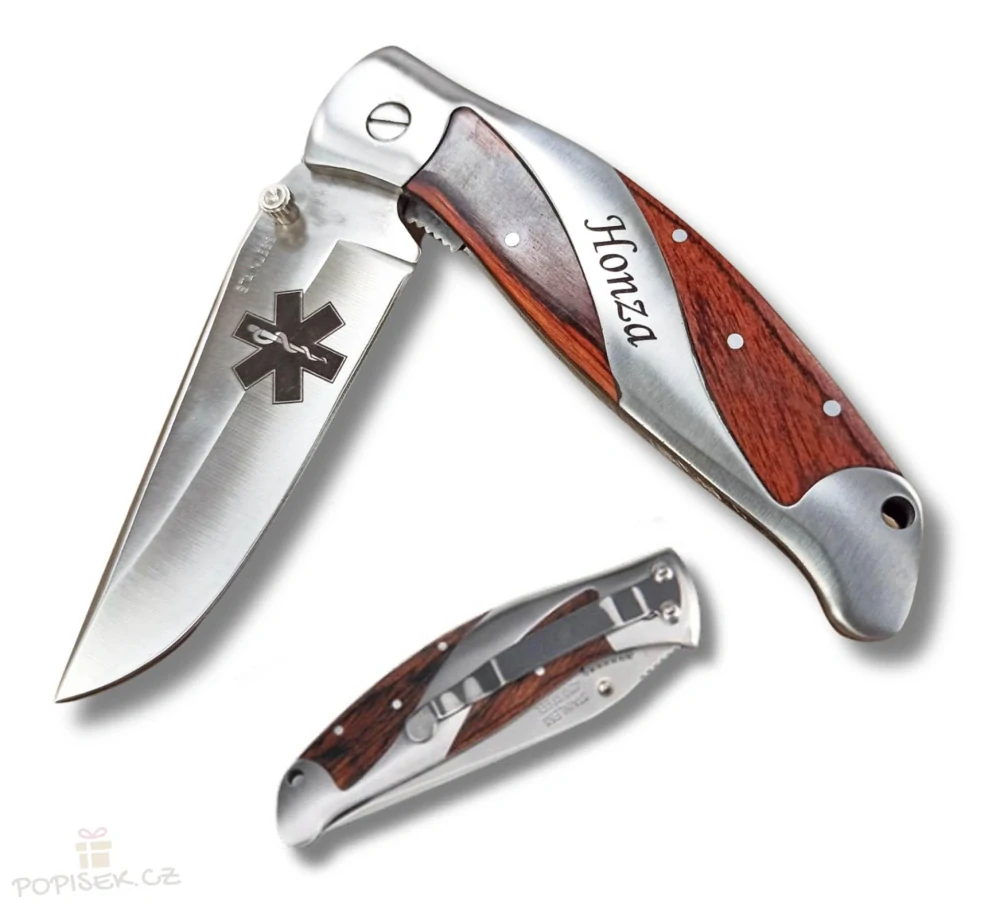 Kapesní nůž spojuje kov a dřevo v elegantní rukojeti. Osobní dotek přidává možnost vyrytí jména nebo věnování na čepel nebo rukojet, činící každý nůž unikátním dárkem. Ideální kombinace estetiky, funkcionality a osobního výrazu.