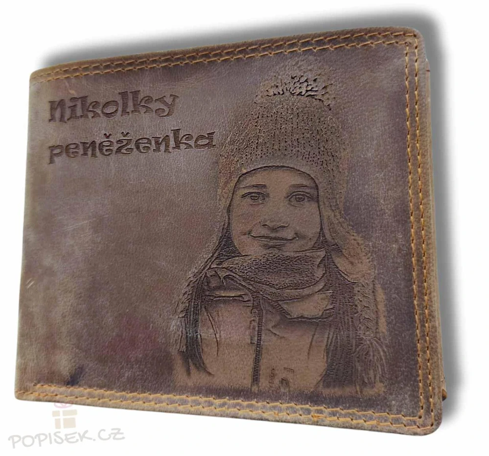 Kožená peněženka s gravírováním – fotka, obrázek nebo logo podle přání