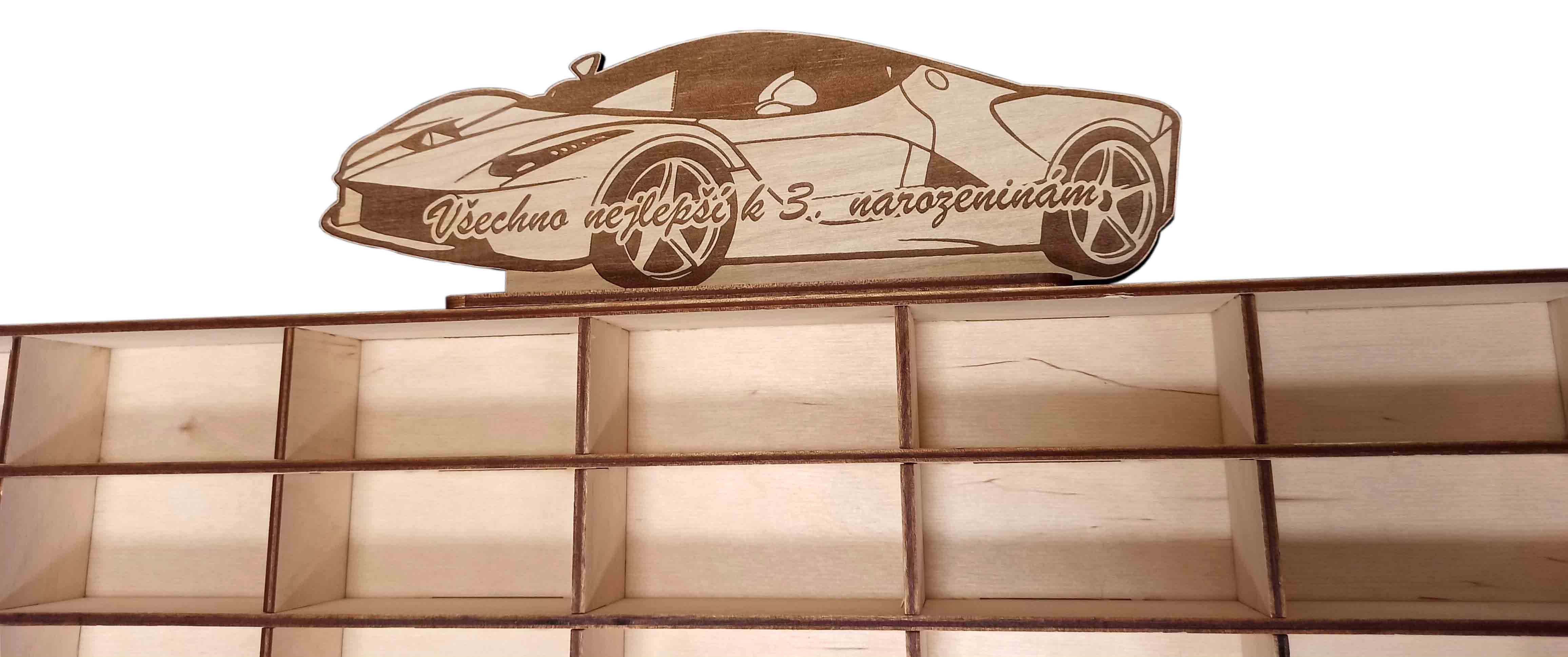 - MEGA dřevěná polička na autíčka (1:43) – 3x7