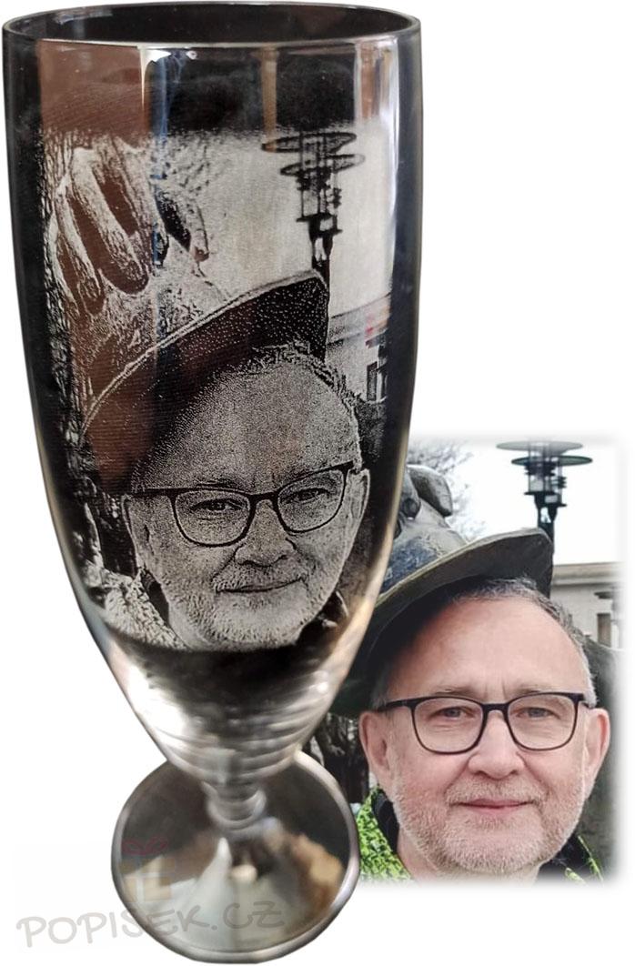 Pivní sklenice na nožce o objemu 0,38 litru, kterou můžete nechat vygravírovat laserem s fotografií a věnováním. Jedinečný dárek pro blízké. Objednejte ještě dnes a překvapte je nezapomenutelným a osobním pohárem na pivo.
