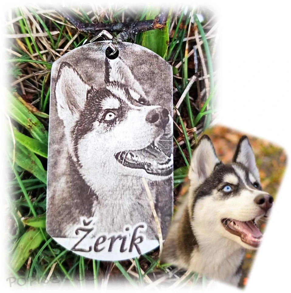- Psí známka s gravírováním