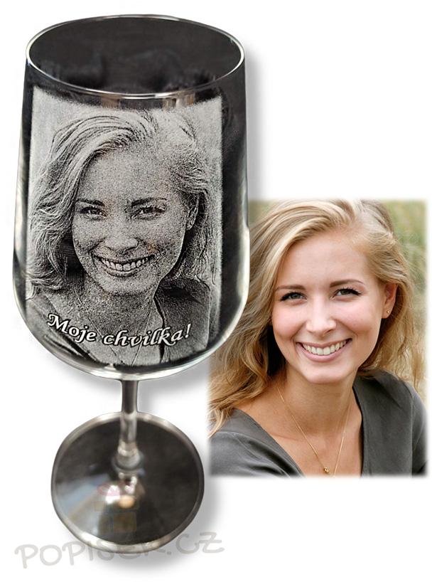 Sklenička na víno s gravírovanou fotkou. Nádherný dárek vhodný pro svatebčany.