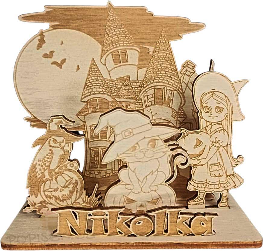 Dřevěný strašidelný zámek je roztomilou dekorací na Halloween.