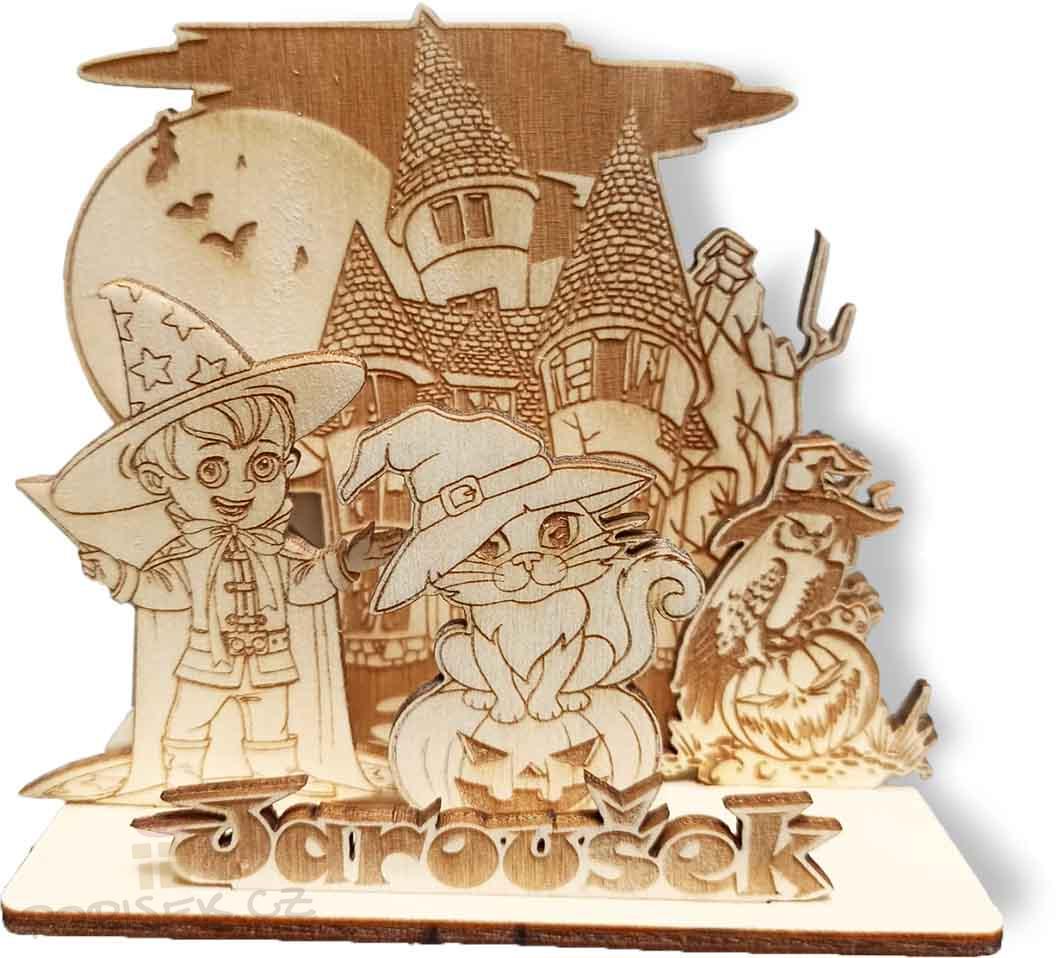 Dřevěný strašidelný zámek je roztomilou dekorací na Halloween.