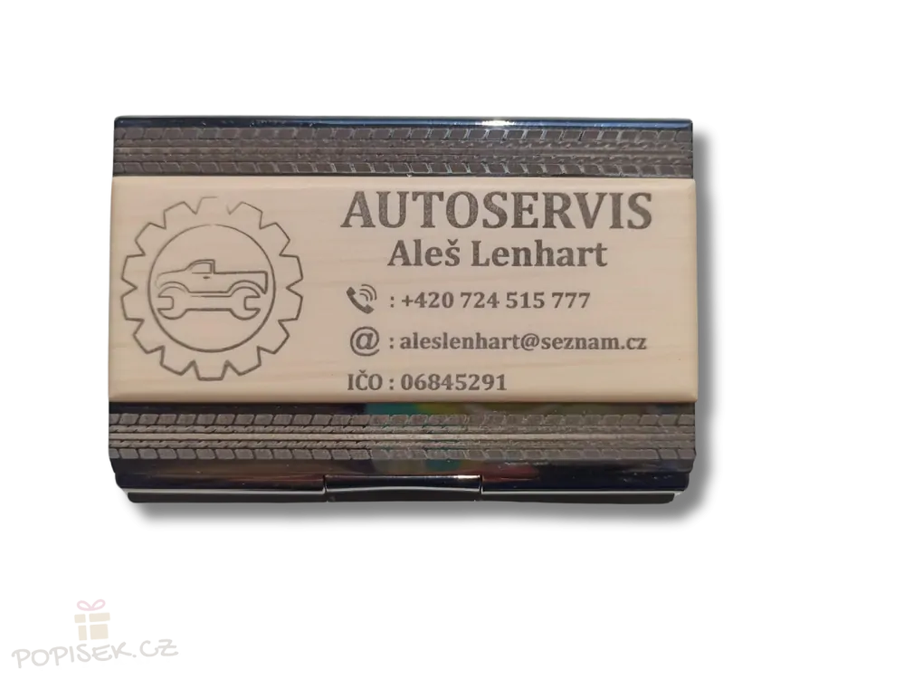 Kovový vizitkář s imitací dřeva a možností gravírování